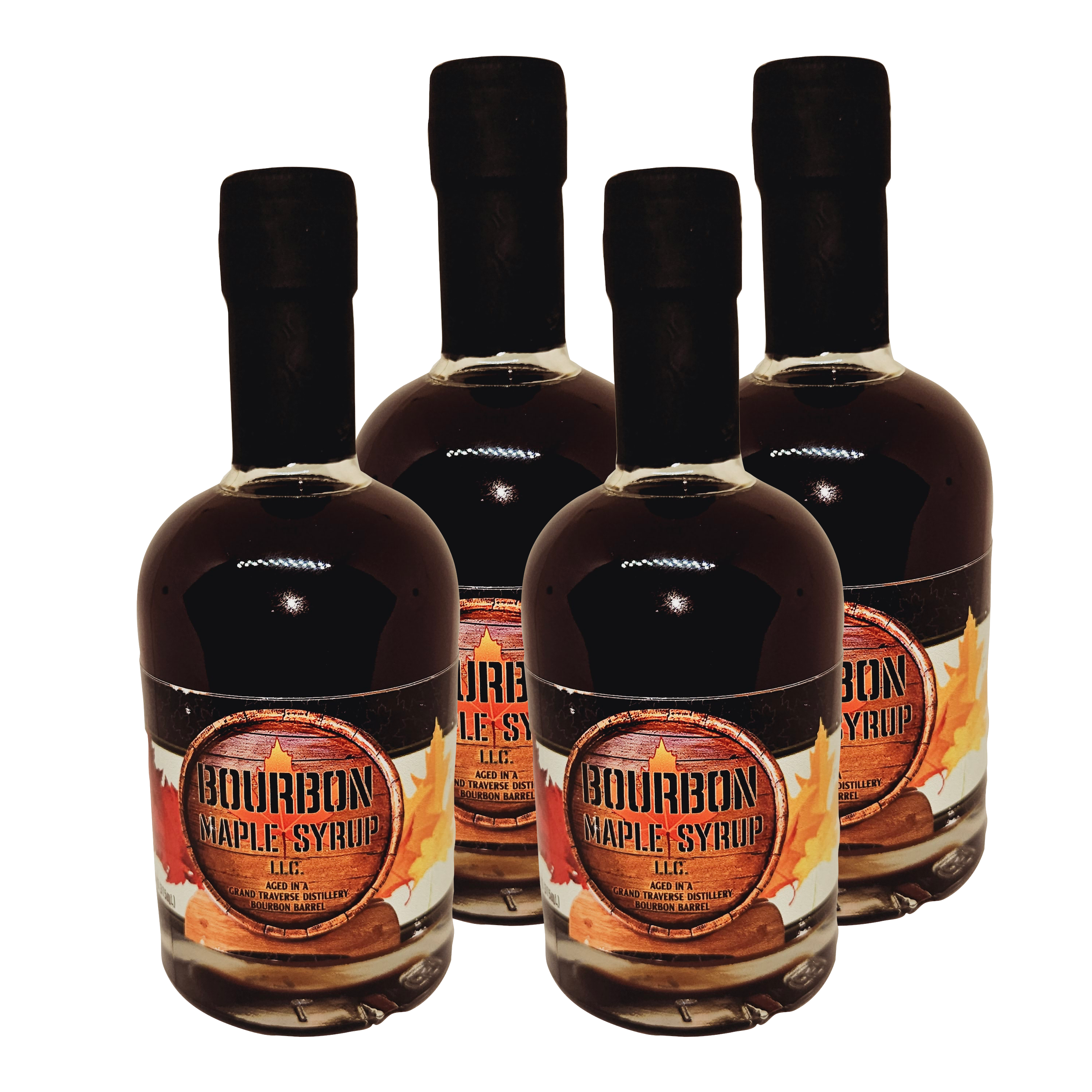 The production of award-winning bourbon at the Grand Traverse Distillery creates deeply infused oak barrels that are used to age high-quality maple syrup from multiple Michigan sugar bushes to create this one-of-a-kind Bourbon Barrel-Aged Maple Syrup. We are happy to offer this distinctive taste sensation and hope you enjoy it.